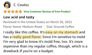 Naturally low-acid beans: High-altitude, slow-grown coffee that’s smoother and easier on your stomach.